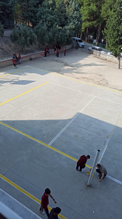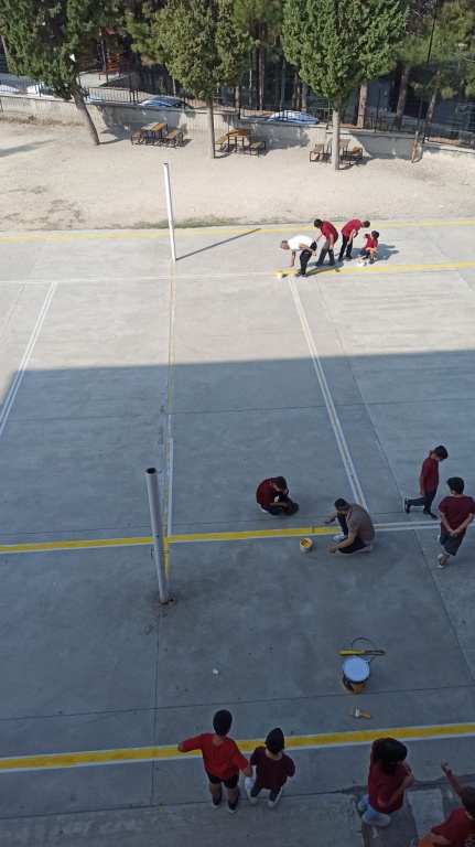 OKULUMUZ VOLEYBOL SAHASI ÖĞRETMEN VE ÖĞRENCİLERİMİZİN ORTAK ÇALIŞMASI İLE YENİLENDİ.